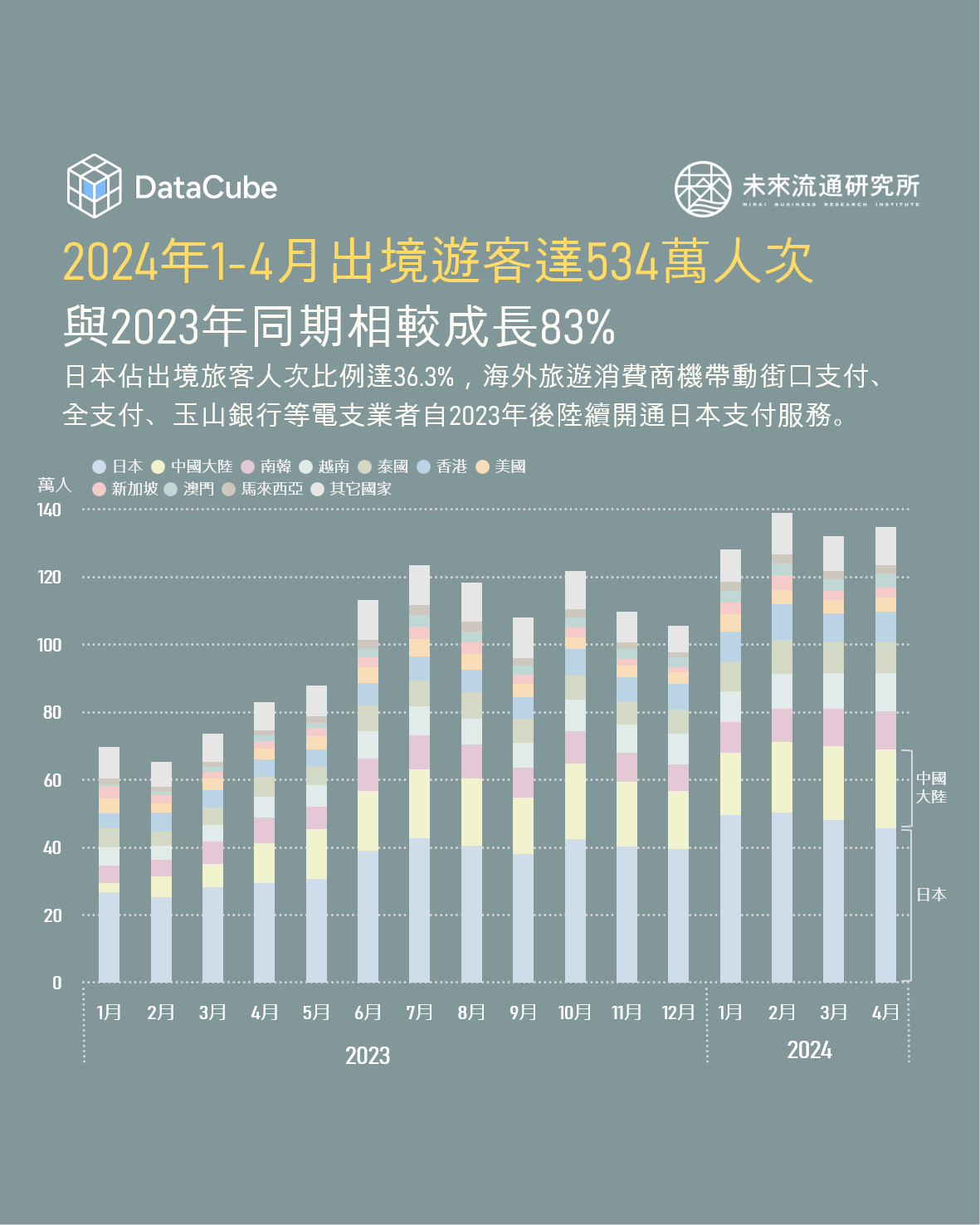 2024年1-4月出境遊客達534萬人次