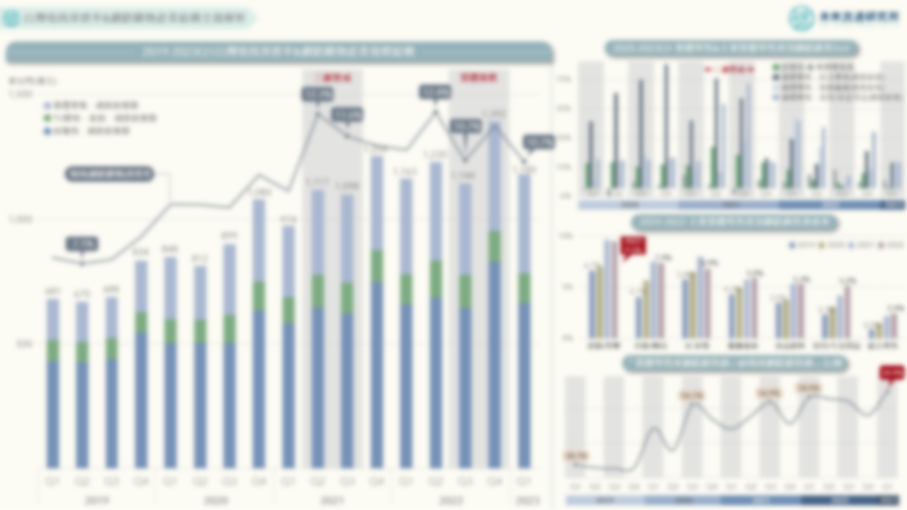 3個台灣「生活次產業」六都結構&單店營業額新情報news! 💡 大型連鎖業別:健身房&不動產仲介業疫情期間持續增長;KTV產業疫情後強勢反彈、台中市成長表現亮眼 💡 美麗經濟業別:美髮院/髮廊&美容美體服務業溫和成長,台北市佔比近30%、規模優勢顯著 💡 新興加盟業別:課業補習班&自助洗衣店新進加盟成長亮眼;夾娃娃機店業規模增長趨緩 生活產業涵蓋範疇多元廣袤,緊扣民眾日常需求動向與生活型態,不僅是觀察民間消費與剛性需求走勢的重要指標,近年在機構投資人及大型連鎖集團的布局帶動下,多項生活業別轉進成為現代化連鎖加盟及創新創業的重要戰場,產業經濟價值大幅提升。本次調查結果顯示,8項生活次產業別2023年營業規模已全數超越2019年疫情前水準,其中不動產仲介、課業補習班、健身房以及美容美體等業別疫情前後更增長逾20%。顯示生活產業雖然在規模上未能與零售、餐飲等大型核心服務業別競爭,但其所展現的成長力道與蘊含的獨特生活型態價值,為觀察終端消費趨勢與偏好變化的重要參照基礎。